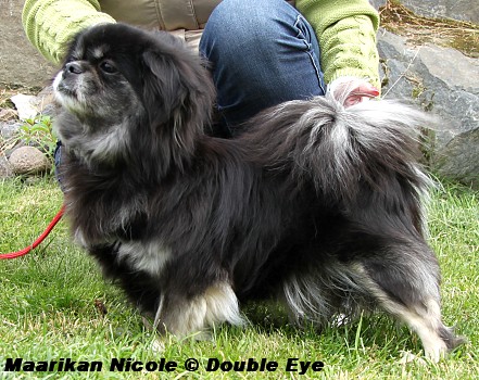 Tiibetinspanieli Maarikan Nicole eli Doris on 18.3.2006 syntynyt black&tan narttu Maarikan -kennelistä Hietanasta. Doris on reipas ja räväkkä rouva kotioloissa, jonka ruokakupille eivät isommat tule, paitsi Iiris, jos niin haluaa. Doris kyllä vie ruoat vaikka toisen suusta, paitsi Iiriksen suusta. Iiris on ainoa auktoritetti koiralaumassa, jota Doriskin kunnioittaa. Doris inhoaa kaulapantaa ja hihnassa lenkkeilyä. Lempikamu on ehdottomasti Pomo, jonka kaulapussissa on kiva roikkua ja selkään hyvä kiivetä. Doris osaa kyllä todella koetella isompien pitkäpinnaisuutta. Energiaa ja nopeutta riittäisi muillekin jaettavaksi ja Doriksella onkin vahvat resilihakset. Siro ja pienipäinen tipsurouva, sellainen kun tipsunartun tuleekin olla :-). Doriksella on yksi veli ja Doriksen äiti Elli muutti meille viettämään eläkepäiviään reilun 9 vuoden iässä. Tästä linkistä pääset Maarikan kennelin -sivuille.